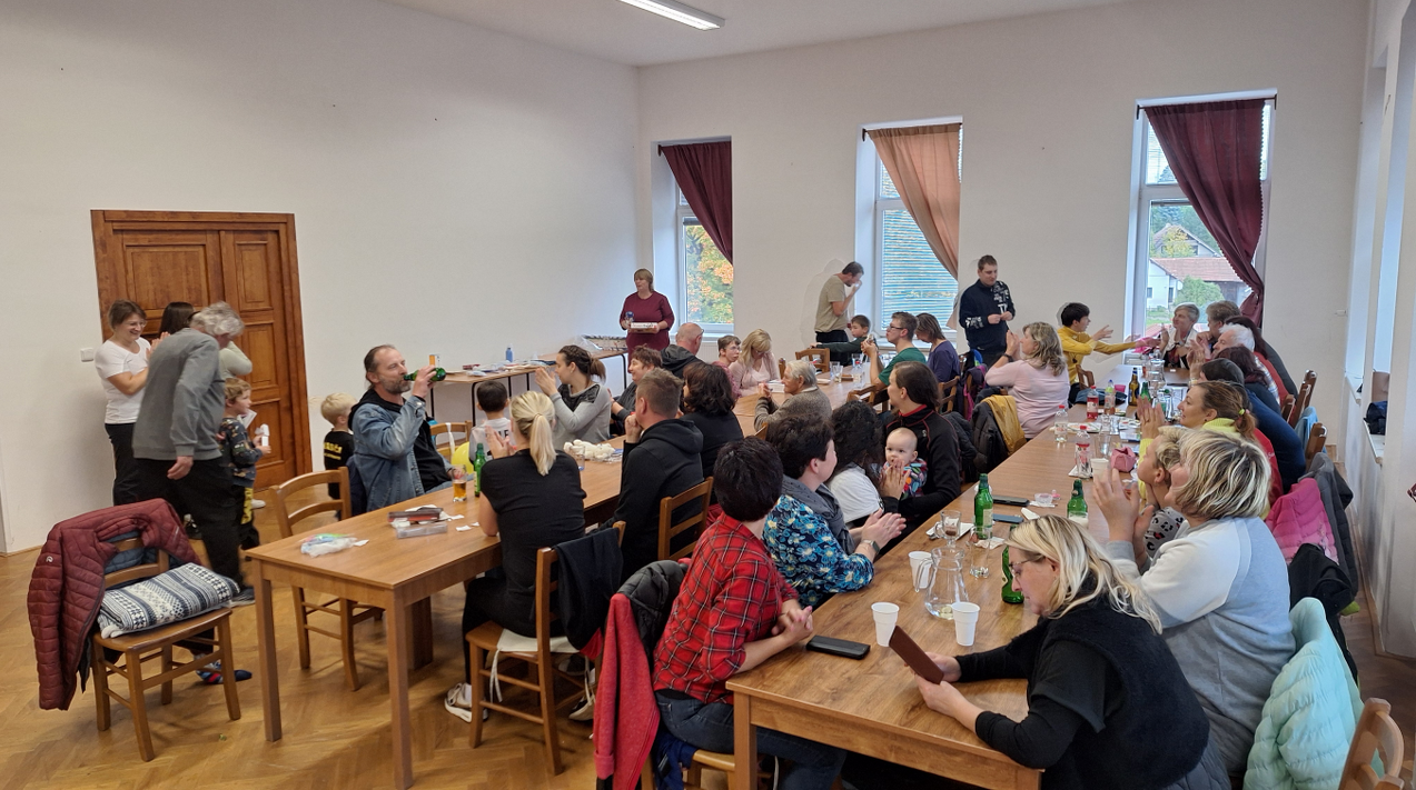 Do večerních hodina následovala volná zábava, při které si mohl každý nabarvit svůj hrníček, pro děti byla připravena krásná tombola a k poslechu a k tanci zahrál místní OÚ band.